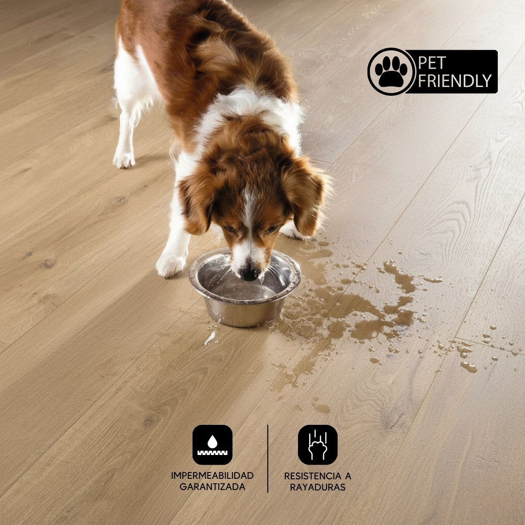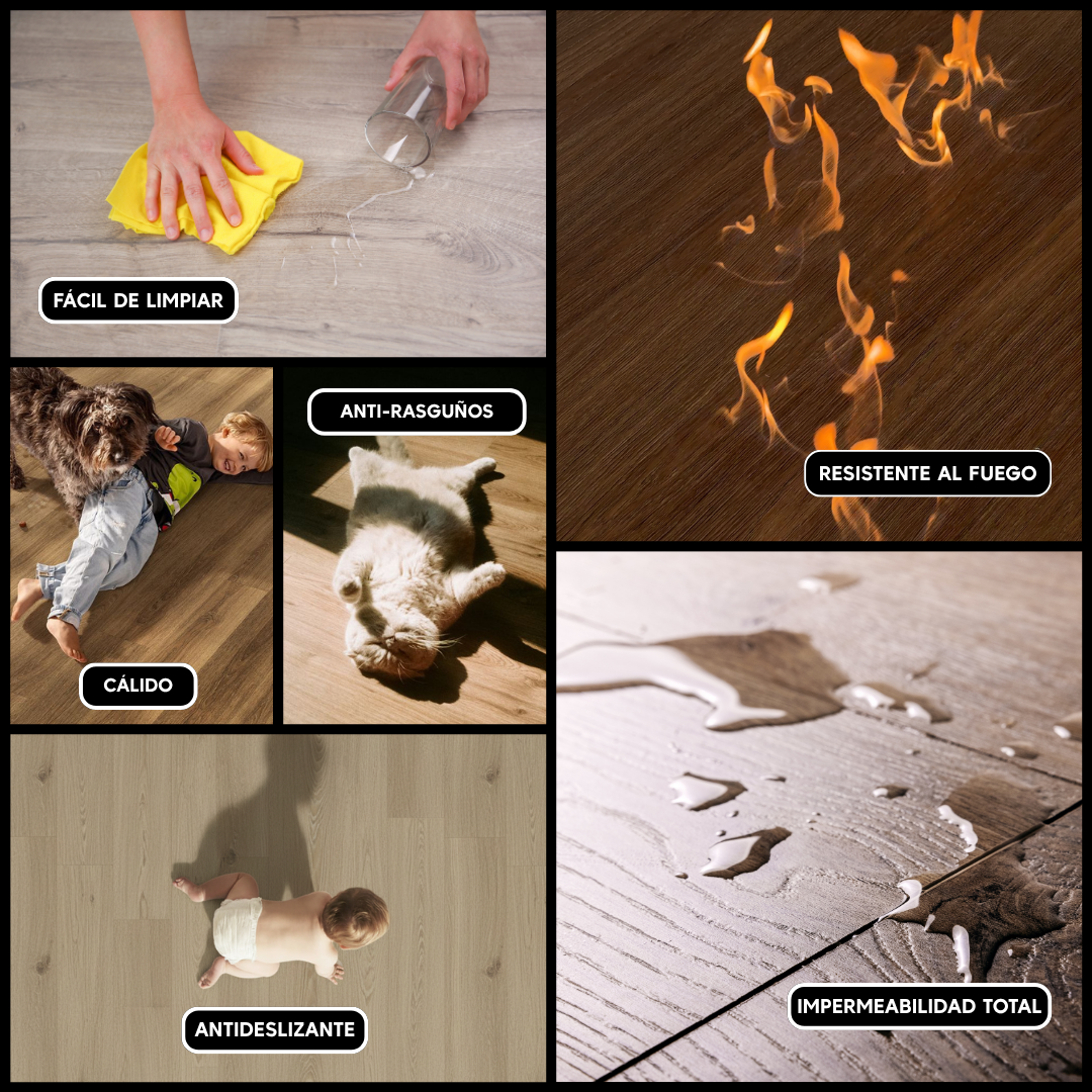 Fácil de instalar y 100% resistente al agua, este suelo SPC cuenta con aislante acústico integrado y garantía de hasta 12 años, ofreciendo confort, durabilidad y máxima confianza.