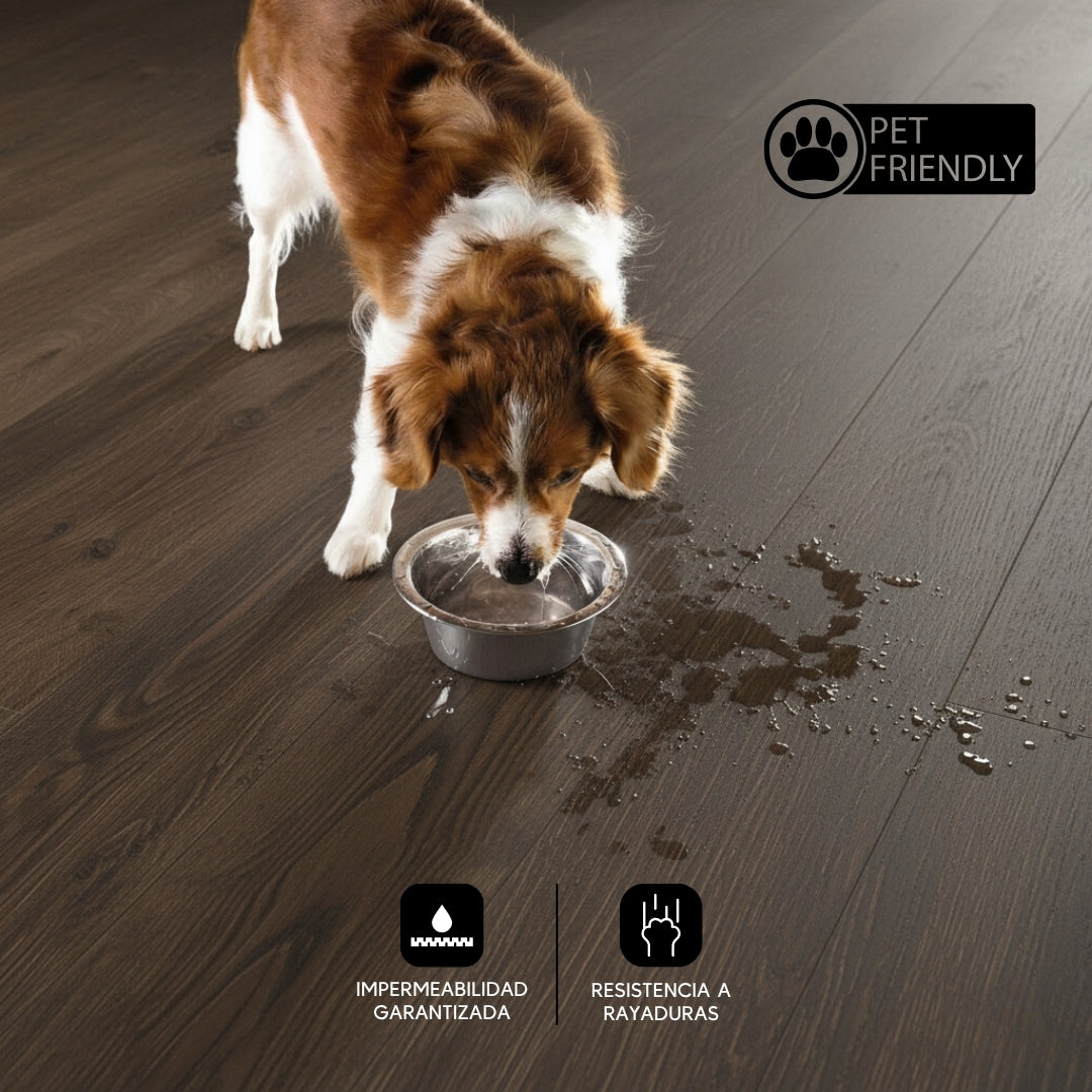 Fácil de instalar y 100% resistente al agua, este suelo SPC cuenta con aislante acústico integrado y garantía de hasta 12 años, ofreciendo confort, durabilidad y máxima confianza.